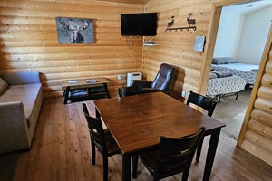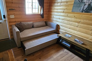 1 Bedroom • 1 Bathroom 1 Bath • Sleeps 1-8We offer 6 perfect 1 bedroom cabins that are arranged along a crescent shaped path around the edge of an Alaskan forest. Cabins 1 through 4 each have a queen size bed in the bedroom and a queen size hide-a-bed in the living room. Cabins 5 and 6 have multiple beds in the bedroom. The 1 bedroom/1 bath cabins face an ultra-lush green lawn that provides a hot tub, plenty of outdoor cooking, outdoor dining tables, and a huge fire pit with plenty of bench seating for the whole group. Each cabin contains a kitchen and living room. Each cabin has a covered porch and freezer for storing your fishing catch, along with a personal BBQ grill. Plenty of parking. Rent just 1 cabin or all 6.